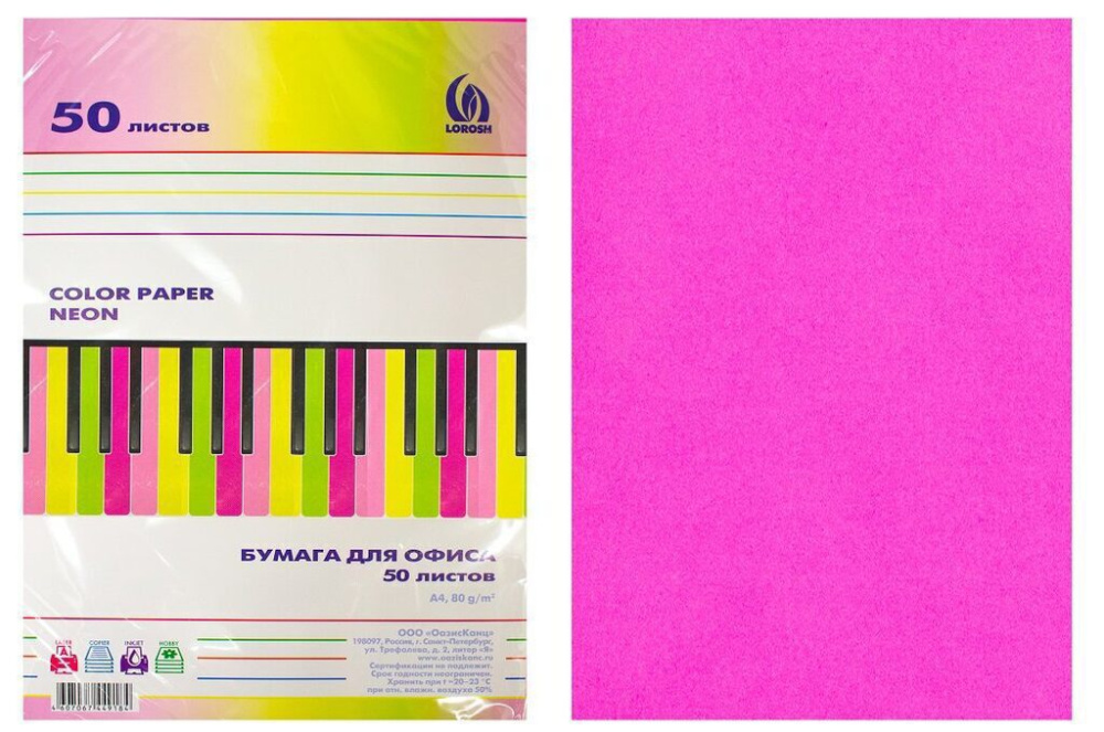 Цветная бумага Неон (малиновая) формата А4 применяется для печати объявлений, листовок, рекламной информации. Подходит для всех видов офисной техники.