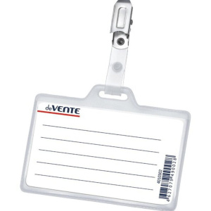Бейдж "deVENTE" 60x90 мм, прозрачный с клипом