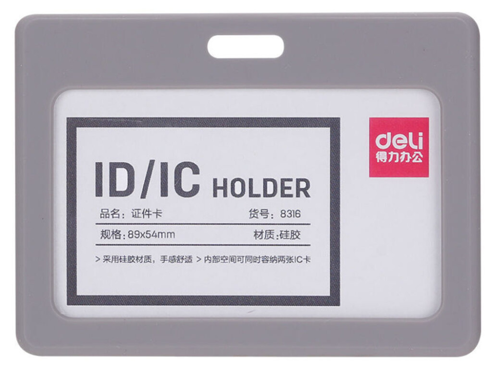 Бейдж именной горизонтальный, без крепления. Внешний размер: 63х105х6мм, внутренний размер для карты: 54х90 мм, цвет: серый. Емкость: 2 карты, материал- силикон + PP пленка. Мягкий, эластичный силикон, закругленные уголки. Яркий и модный цветовой дизайн. Можно мыть, не токсичен Вес: 24 грамма.
