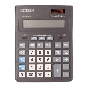 Настольный бухгалтерский калькулятор в пластиковом корпусе с 14-разрядным дисплеем. Размер 155*205*35 мм. Позволяет совершать все основные математические действия, рассчитывать проценты, наценку, извлекать квадратный корень, запоминать промежуточный результат. Двойная память. Удобная клавиатура снабжена кнопками двойного и тройного нуля и удаления последней отображаемой цифры. Переключатель режима округления и количества знаков после запятой. Два источника питания: солнечная и алкалиновая батареи. Для экономии энергии предусмотрена функция автоматического выключения.