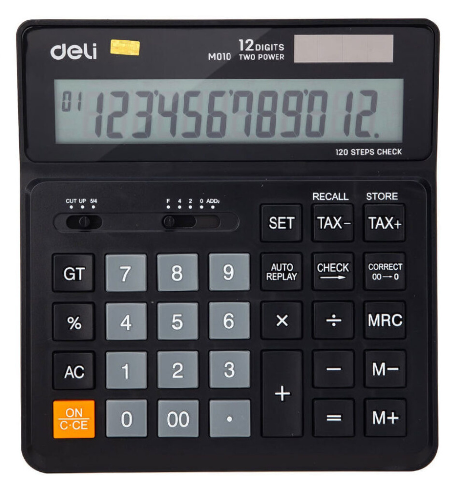 —Калькулятор 12 разр. Deli настольный, бухгалтерский, черный EM01020