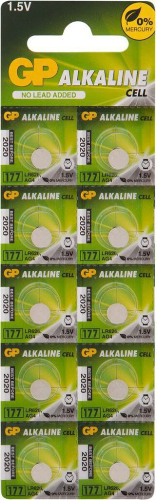Батарейка-таблетка 177A GP Alkaline, блистер, цена за 1 шт