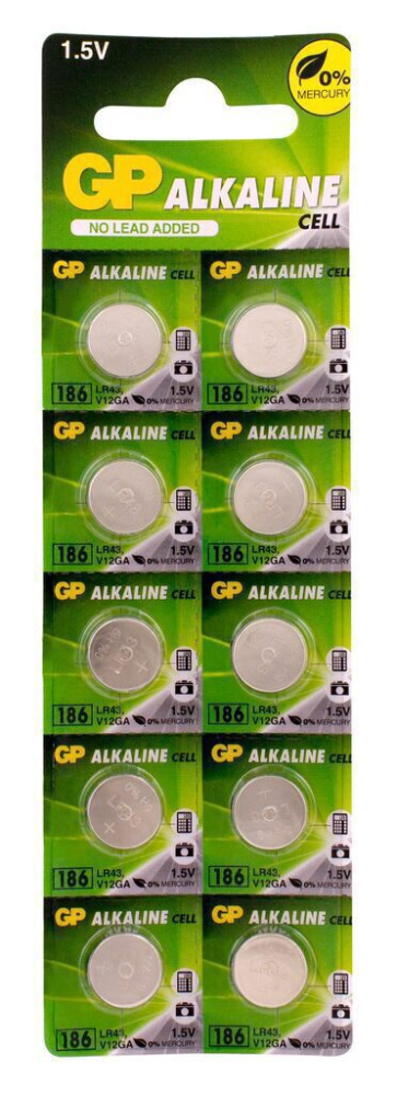 Батарейка-таблетка G-12 (LR43) GP Alkaline, блистер, цена за 1 шт