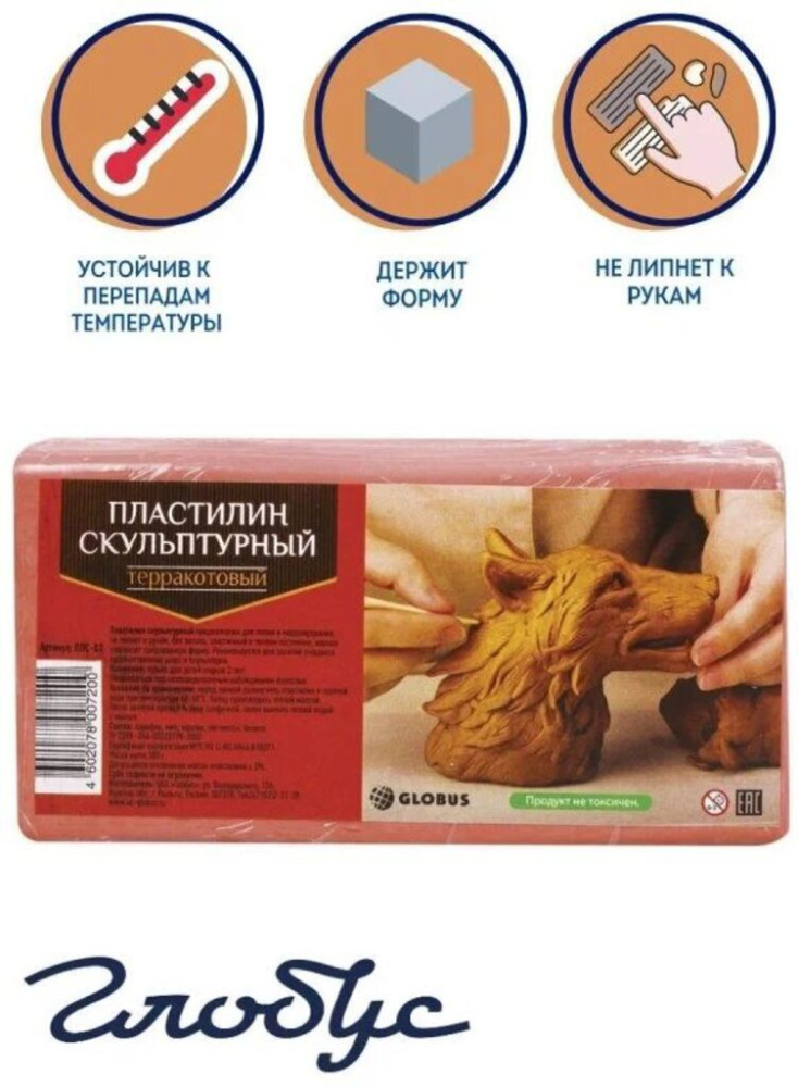 Пластилин скульптурный, цвет терракотовый (500 грамм). Твердый скульптурный пластилин предназначен для профессионалов. Подойдет для изготовления скульптур, макетов, а также в качестве моделирующей массы для гипсовых элементов. Идеальное соотношение мягкости и твёрдости материала, хорошая пластичность. Держит форму и при этом устойчив к перепадам температуры. Пластилин не оставляет пятен и не липнет к рукам.